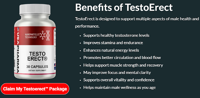 TestoErect Male Enhancement is a dietary supplement designed to support male vitality, stamina, and overall sexual health. Many men experience reduced libido, low testosterone levels, and decreased energy as they age. This supplement is formulated with natural herbs, vitamins, and minerals that aim to support hormonal balance, improve blood circulation, and enhance physical performance.